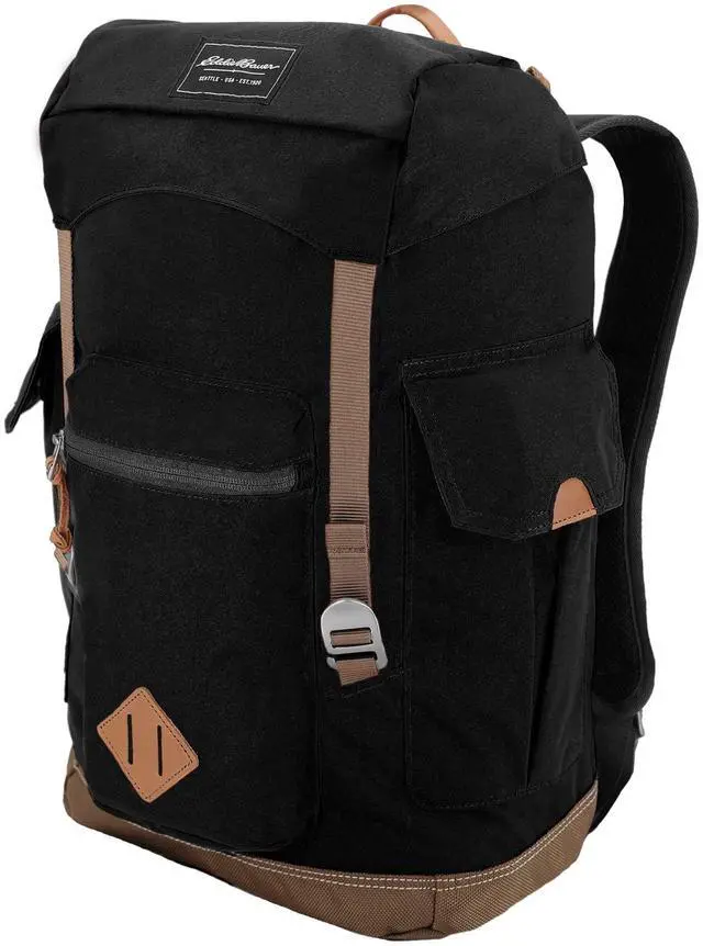 The secure lid fastens with metal latches, adding both style and security to your gear. Designed for unisex use, its compact yet spacious design and adjustable straps offer all-day comfort for users of any height. With a blend of classic aesthetics and rugged durability, the Eddie Bauer Bygone 25L Backpack is your go-to solution for organized storage and reliable performance, no matter where your journey takes you.