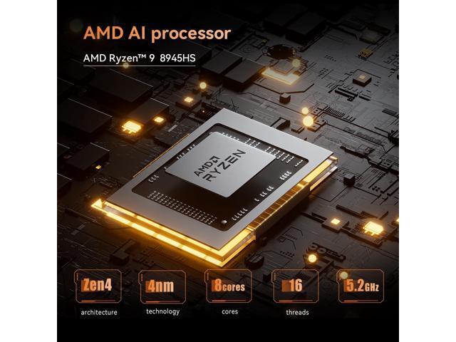 - [(Powerful Ryzen 9 8945HS)] MINISFORUM UM890 Pro is equipped with a new-generation AMD AI Ryzen 9 8945HS processor, with 8 cores and 16 threads, 16 MB L3 cache, a maximum acceleration frequency of 5.2 GHz and an integrated AMD Radeon 780M graphics card with an operating frequency of up to 2,800 MHz, offering excellent graphics processing power for multitasking and gaming needs. Equipped with a neural processing unit (NPU) to handle certain AI-related tasks.