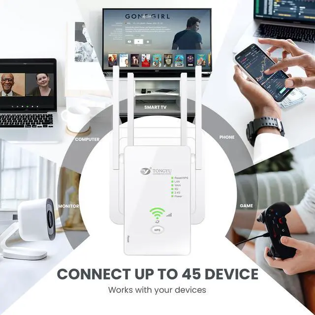 [Large Devices Capacity] The wifi booster extender with OFDMA and MU-MIMO technology to efficiently allocate channels and connect up to 45 devices simultaneously.provides distraction-free wifi signal to meet your needs for your smart family and daily life.