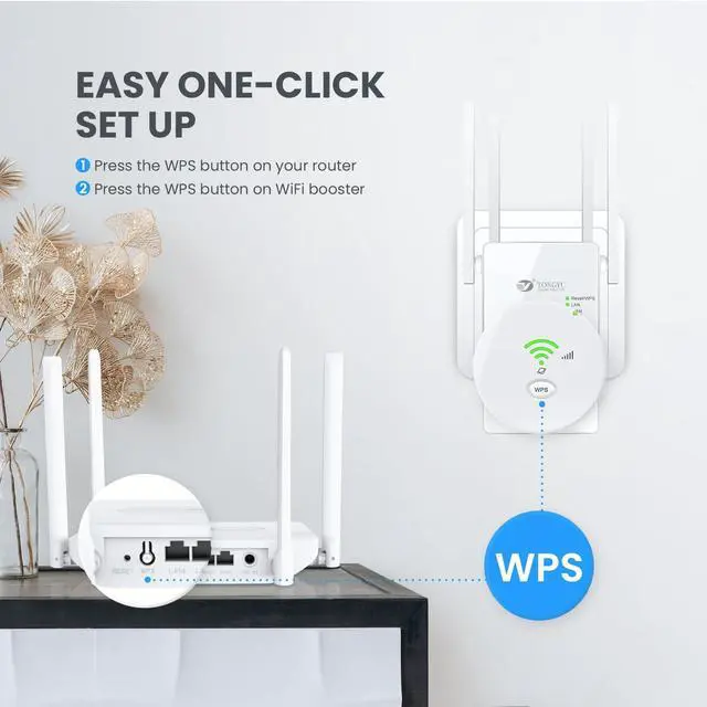 [Strong Signal Penetration] The wifi range extender has 4 high-gain external antennas and combine beam forming technology to minimize the loss of extender wifi signal transmission to extend powerful and reliable wifi to your entire home.