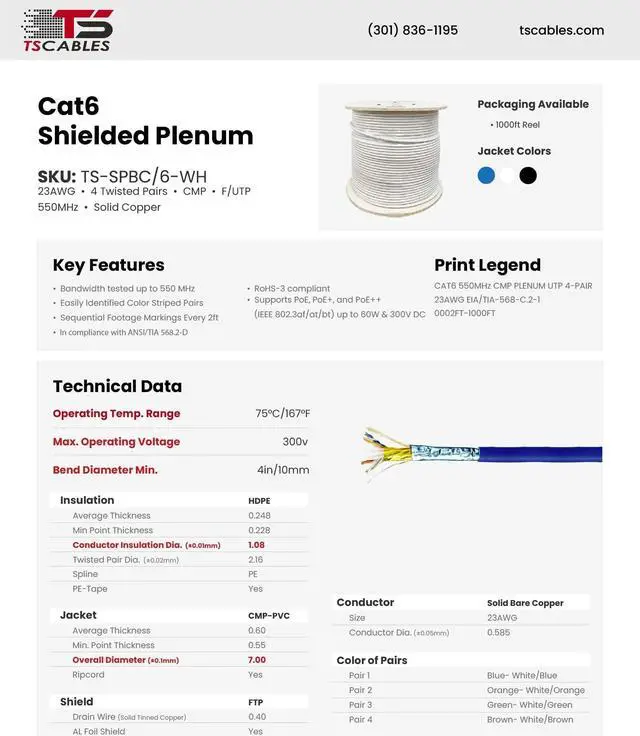 Cable Type: Cat6 Plenum (CMP) Shielded F/UTP