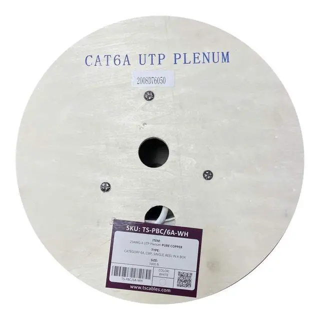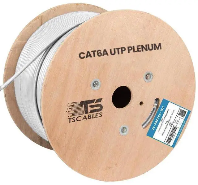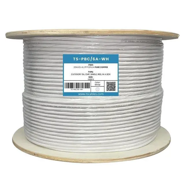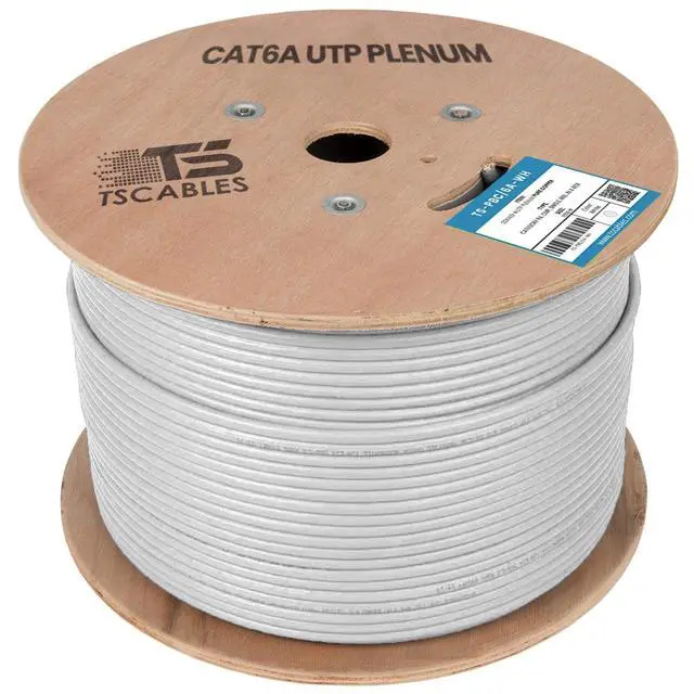 Cat6A plenum rated Ethernet cable is 23 AWG with 4 pairs (8C). Suitable for 1 Gigabit and 10-Gigabit Ethernet. Bandwidth tested up to 750 MHz. ^^ 1000 feet (305 meters) of our Cat6A Plenum Cable has been packaged on a tangle free, easy pull reel/spool. ^^ 100% SOLID BARE COPPER CONDUCTORS. Pure bare copper produces a stronger signal along with better conductivity and flexibility. ^^ Our Cat6A Plenum jacket is fire safety rated for use in air plenum spaces above suspended ceilings or below raised floors. High degree of flame resistance and low toxicity smoke.