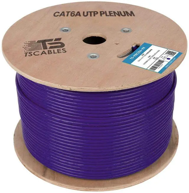 Cat6A plenum rated Ethernet cable is 23 AWG with 4 pairs (8C). Suitable for 1 Gigabit and 10-Gigabit Ethernet. Bandwidth tested up to 750 MHz. ^^ 1000 feet (305 meters) of our Cat6A Plenum Cable has been packaged on a tangle free, easy pull reel/spool. ^^ 100% SOLID BARE COPPER CONDUCTORS. Pure bare copper produces a stronger signal along with better conductivity and flexibility. ^^ Our Cat6A Plenum jacket is fire safety rated for use in air plenum spaces above suspended ceilings or below raised floors. High degree of flame resistance and low toxicity smoke.