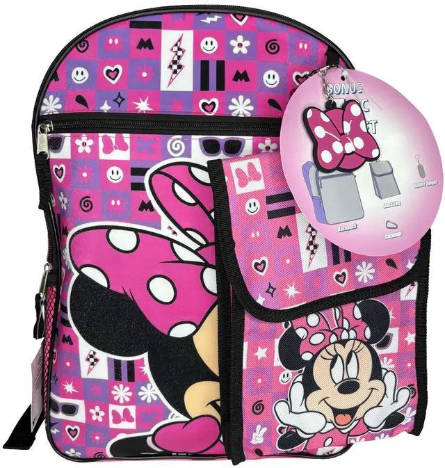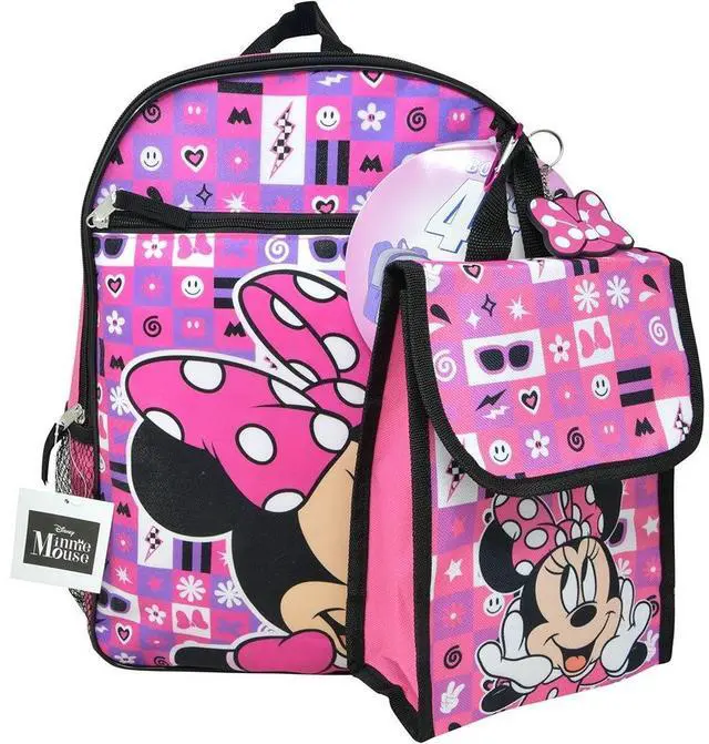 Backpack dimensions: 16"H x 12"W x 5"D. Lunch Box is 8"H x 7"W x 2.5"D.
