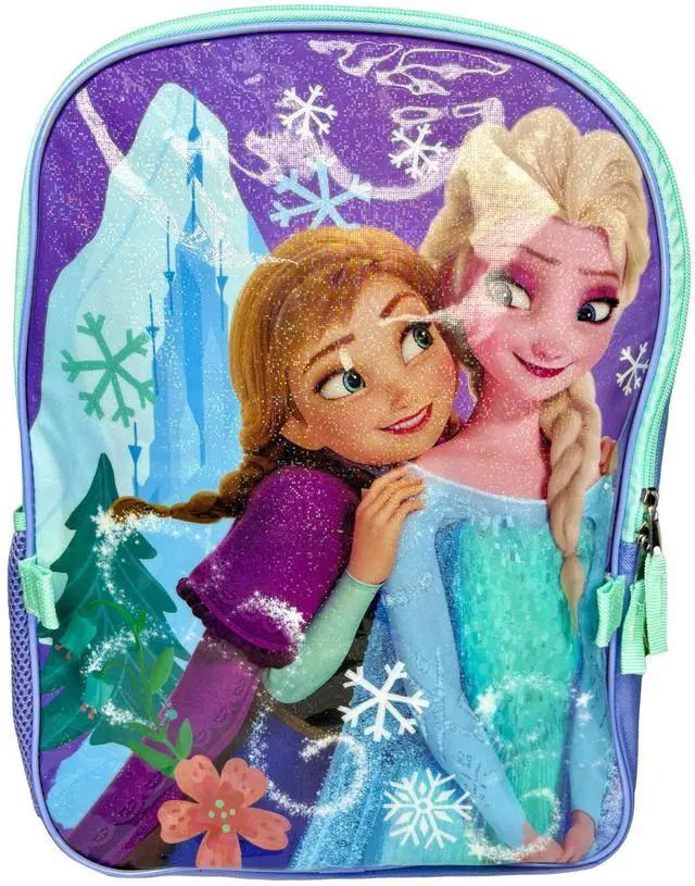 Embark on enchanting journeys with this vibrant Disney Frozen backpack, designed to bring the magic of Arendelle to your child's daily adventures. Featuring beloved characters Anna and Elsa, this backpack combines whimsical design with practical functionality. Whether it's for school, travel, or everyday use, this Disney Frozen backpack is sure to delight young fans and keep their essentials organized in magical style. Not recommended for children under 3 years of age.