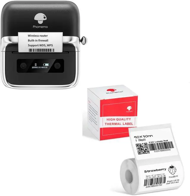 Phomemo M250 3 Inch Label Maker Machine with Tape, 2025 Upgrade Portable Barcode Label Printer for Business, Home, Logo Label, Thermal Address Label Maker with 100 Labels, 40x30mm, Thermal Sticker Label Paper for M250, Multi-Purpose Self-Adhesive Tag 1.96 '' x 1.18" (50X 30mm), 230 Labels/Roll, Black on White