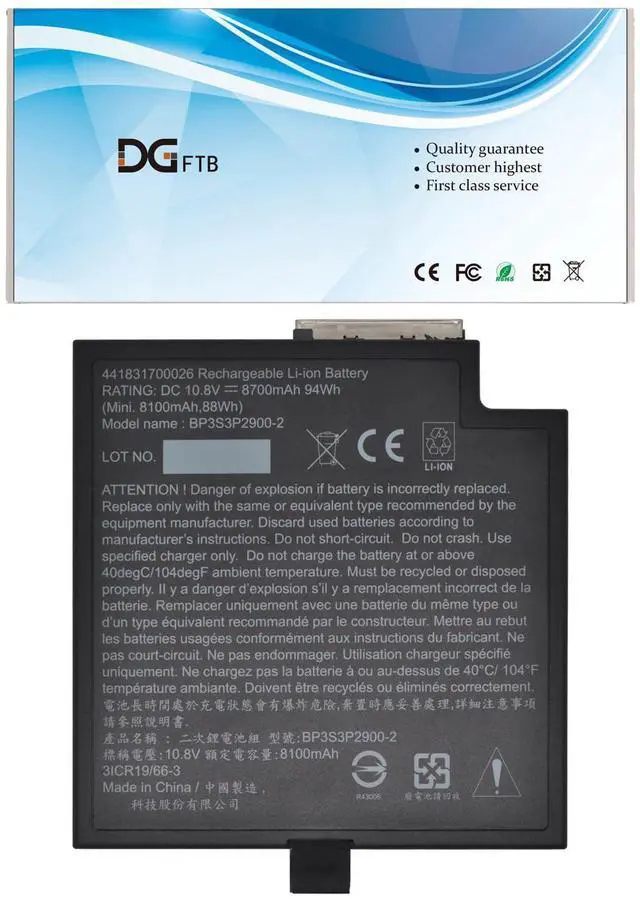 DGFTB BP3S3P2900-2 BP3S3P2900-P Laptop Battery Replacement for Getac B300 B300X Multimedia Bay 2nd Series 441831700026 441831700026 (P) 3ICR19/66-3 10.8V 94Wh/8700mAh New Upgrade Li-ion