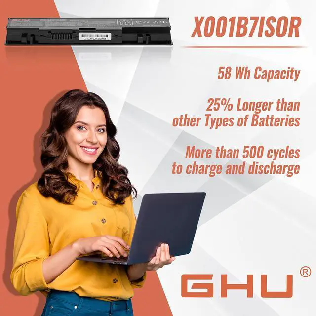 Lasts More Than 3 Hours: This dell pp31l battery provides dependable power, lasting more than 3 hours on a single charge. This makes it an ideal replacement for your existing dell studio 1535 battery, dell studio 1558 battery, mt264 battery, or any 1535 battery or 1558 battery. 6 Cells 58Wh, ghu wu946 battery is fully compatible with dell studio 1555 battery, wu946 dell battery, dell mt264 battery. This GHU battery is also good for dell studio 1555 battery replacement.