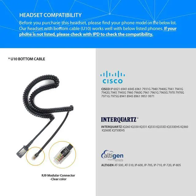 [Ready to Use] Quick Disconnect (QD) to RJ9 with IPD Headset allow easy connection to desk phones. Plug and play.