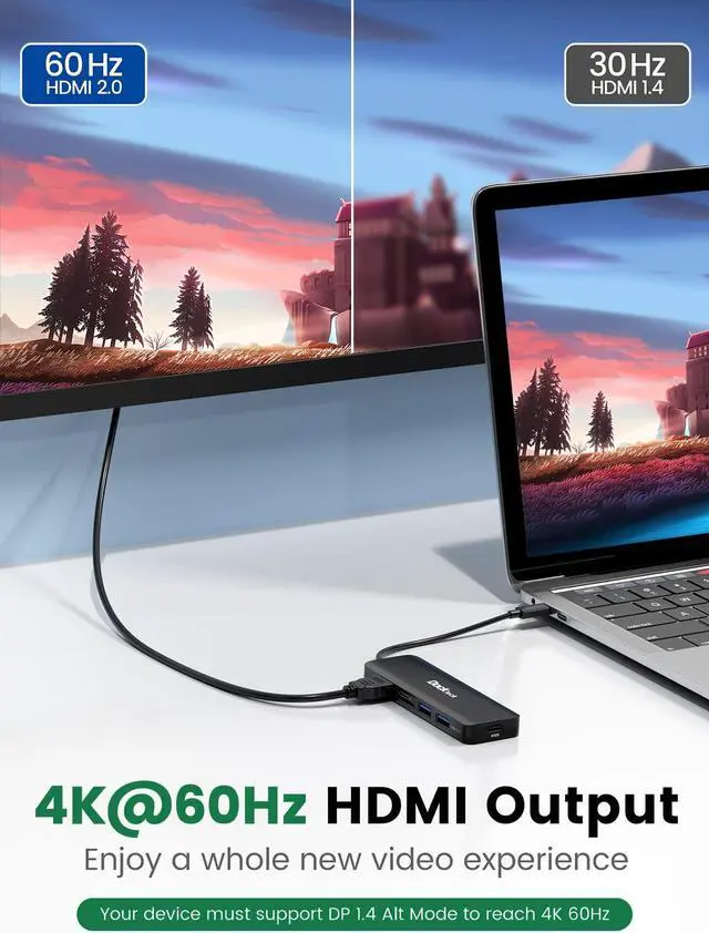 USB C Hub HDMI PD Adapter, Dockteck 6-in-1 Type C Hub with 4K 60Hz, 100W PD, SD & microSD Card Reader, 2 USB 3.0 Data 5Gbps, USB-C Adapter for for MacBook Air / Pro, Surface Pro 7 / 8, XPS and More