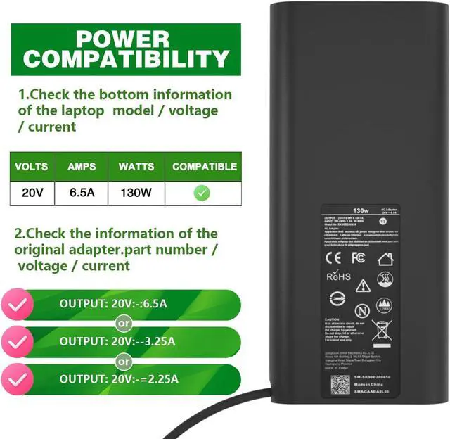 • Safety and WarrantyCompatible with Dell 130w laptop charger is CE/FCC/ROHS safety certified and designed