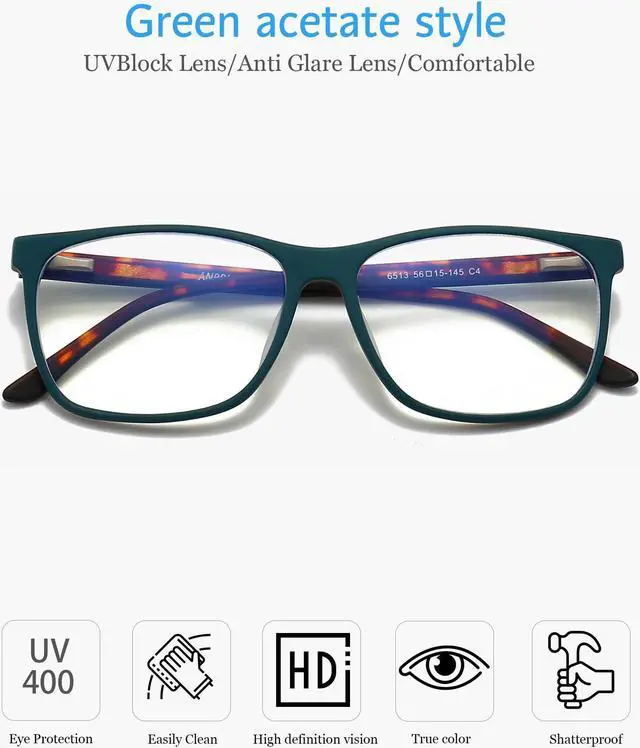 ANRRI Blue Light Blocking Glasses Anti Eyestrain Trendy Green Eyewear Frame with Tortoise Print Interior for Women