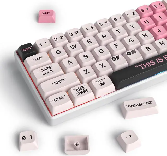 Pink Plactic Theme Pink plactic theme style and Cute Love shape, with a large number of personalized clomplement keys, you can DIY different styles of keyboards according to your own ideas.