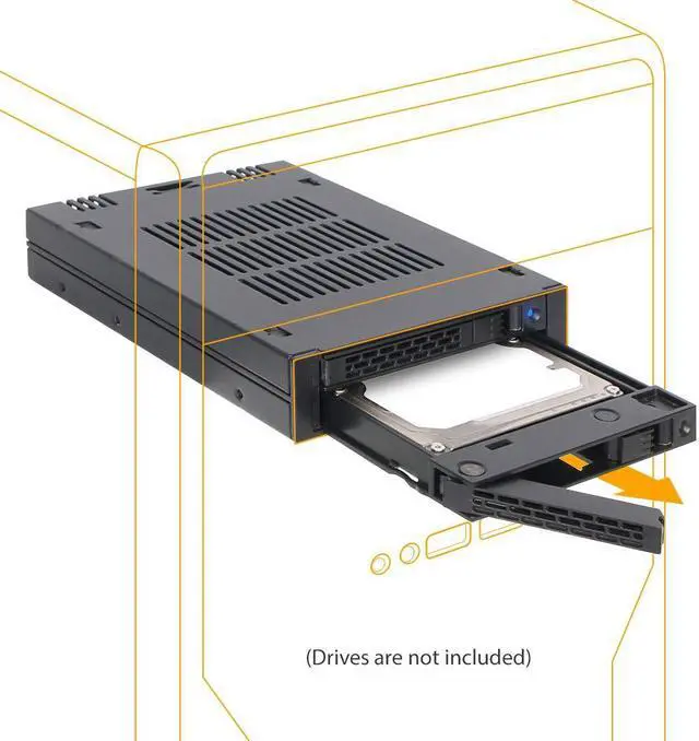• Fits 2x 5mm, 7mm, & 9.5mm 2.5 SATA HDD/SSDs, and installs into a single 3.5 external bay (floppy bay)