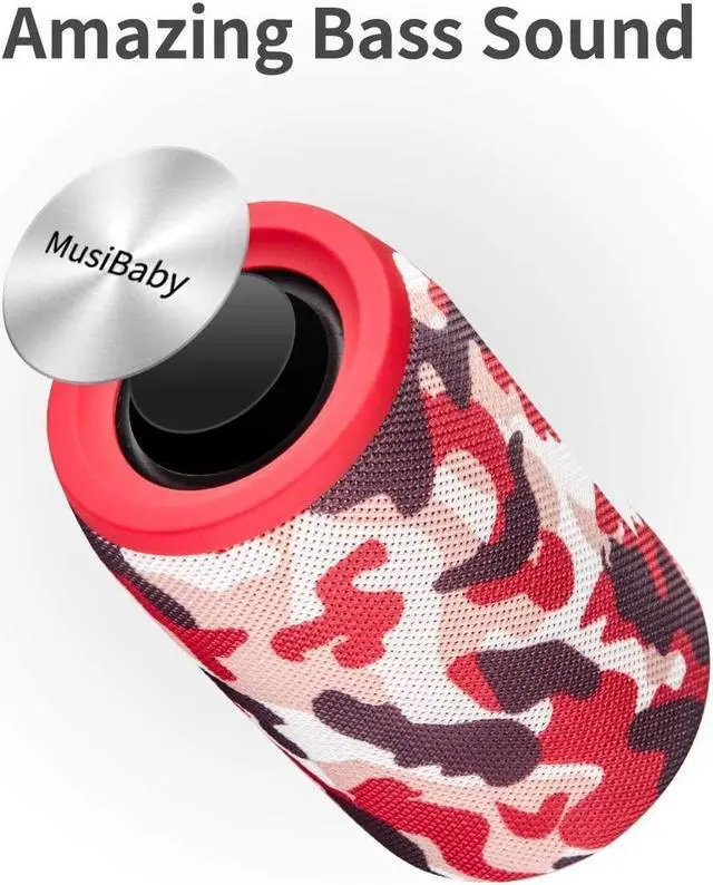MusiBaby Bluetooth Speaker Wireless Portable, IPX5 Waterproof Bluetooth Speakers with Dual Pairing, 24H Playtime, Rich Stereo Bass for Home, Travel, Party, Outdoor ^^ Electronic Gifts (Camo Red)
