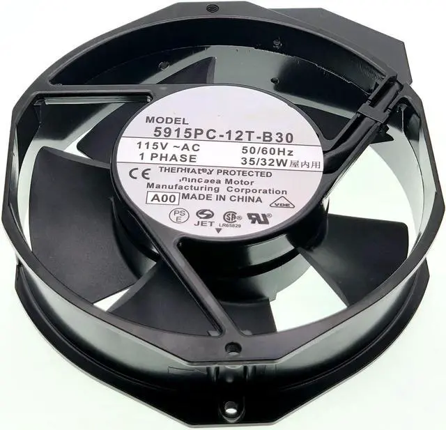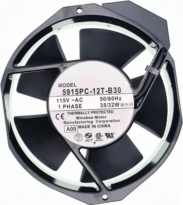 5915PC-12T-B30 5915PC-12T-B30-A00 for NMB-MAT Cooling Fan, 115V Cooling Fan, 35/32W 172×150×38MM Metal high Temperature Resistant Fan Enclosure Power Fan 50/60Hz Model: 5915PC-12T-B30 Size: 172×150×38MM Voltage: 115V Power: 35/32W