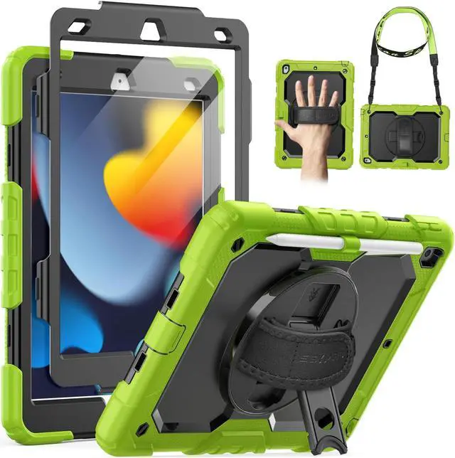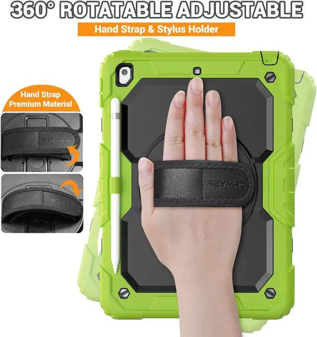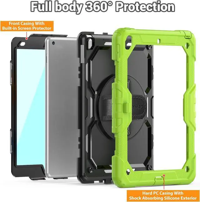 SEYMAC Case for iPad 9th/8th/7th Generation 10.2 inch 2021-2019, Heavy Duty Protective Shockproof Case with Screen Protector, Rotating Stand/Handle/Shoulder Strap for iPad 10.2, Green