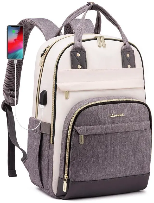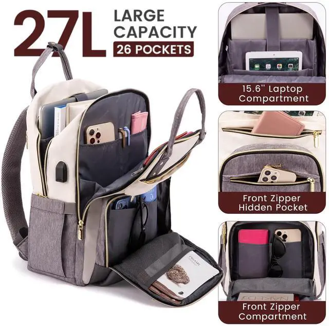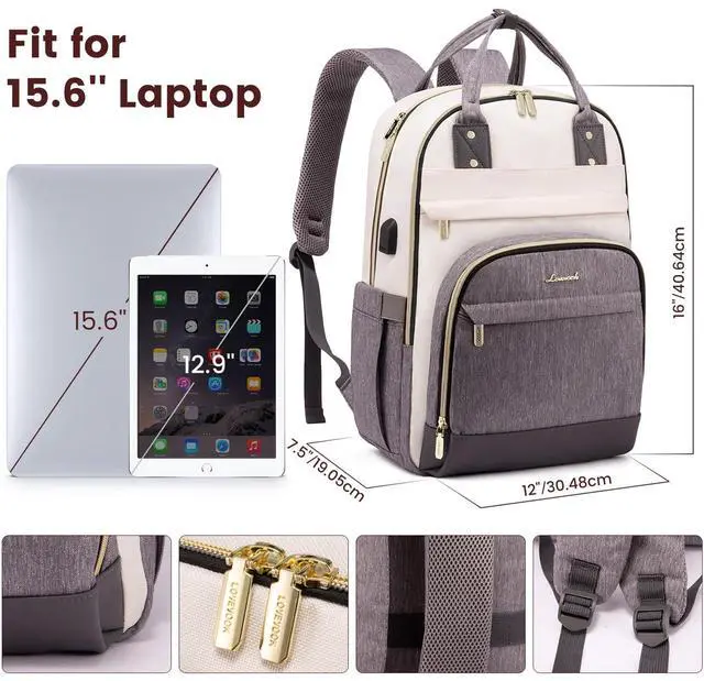 LOVEVOOK Backpack for Women,Laptop Backpack Women,Fits 15.6 Inch Laptop Bag,School Backpacks,Fashion Travel Work Anti-theft Bag,Waterproof Business Computer College Backpack Purse,Beige-Grey-Grey