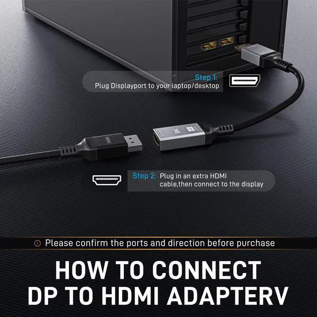 Active Displayport 1.4 to HDMI 2.1 8K HDMI AdapterThe Active DP 1.4 to HDMI 2.1 adapter built-in high performance chip which enables actively convert DP signal from any laptop/desktop with DisplayPort, DP, DP++, or DisplayPort++ to your monitor, projector, HDTV. or VR headset with HDMI for audio and video streaming or gaming. So that you can achieve large screen experiences in your External HDMI Displays.