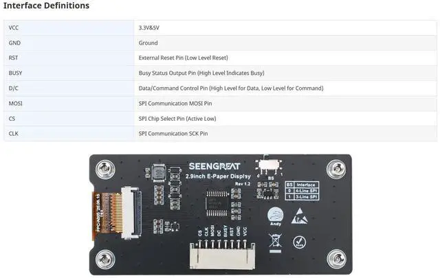 2.9 inch epaper module, SPI interface, requiring relatively few pins occupied
