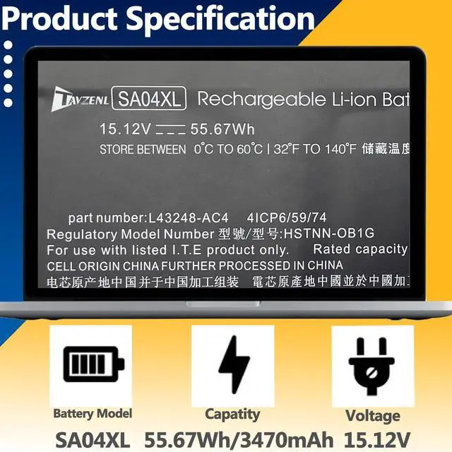 TAVZENL SA04XL 55.67W h Battery Replacement for HP Envy X360 15-DS 15T-DR 15Z-DS 15M-DR 17-CG 17T-CG 17M-CG Series 15.12V 3470