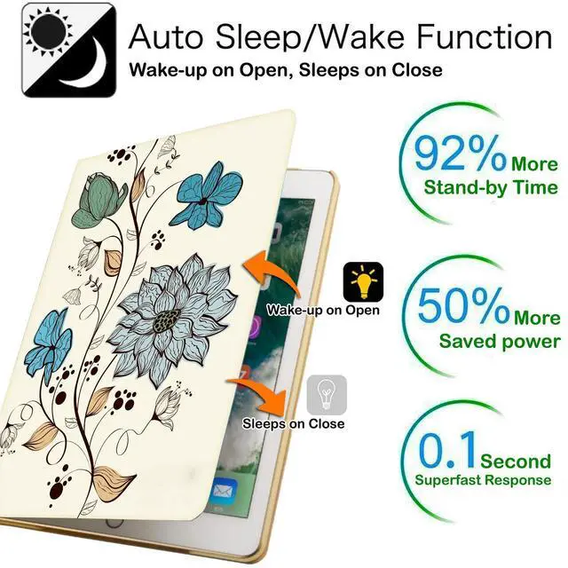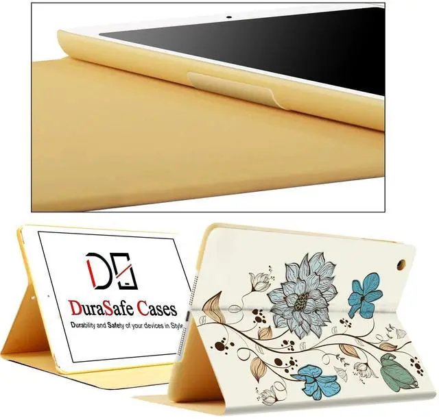 DuraSafe Cases for iPad 9.7 5th 6th Gen Air 1st 2nd Gen [iPad 5 6 Air 1 2] A1893 A1822 A1566 MH2V2LL/A MRM52LL/A Auto Sleep Wake Adjustable Viewing Angle Stand Printed Flip Cover - Watercolor Flowers