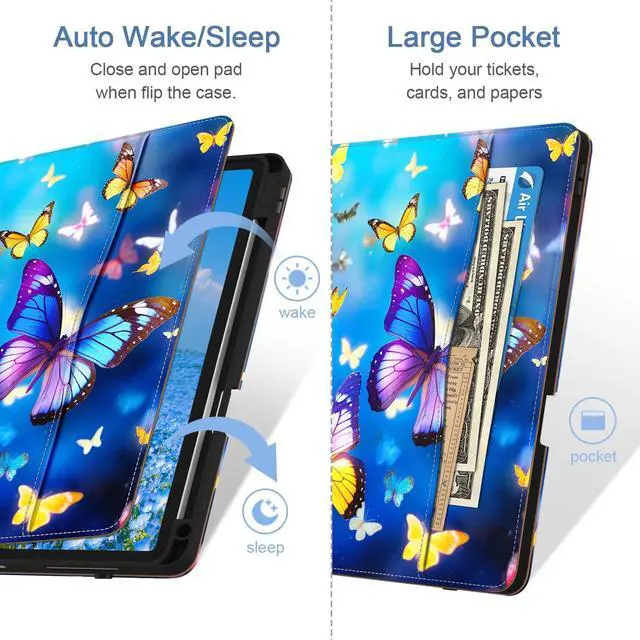 Jarviwiin Case for iPad Pro 12.9 6th/5th/4th/3rd Generation 2022/2021/2020/2018, PU Leather 12.9" Cover with Pencil Holder/Multi-Angle Stand/Pocket, Auto Wake/Sleep,Butterfly Blue