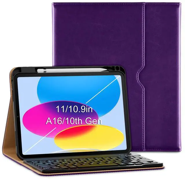 VIKESI Keyboard Case for iPad (A16, 2025) 11th Generation/iPad 10th Generation Case ( 10.9" 2022), Premium Leather Smart Cover, Built-in Breathing Light, Function Row, Pencil Holder, Card Slots - Purple