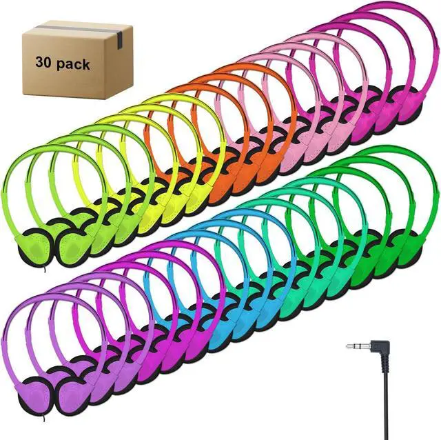 ZHENWAY 30 Pack Class Set Headphones for Kids Students School Classroom Bulk Earphones Adjustable with 3.5 mm Jack for Library Children Adults(004 Multi Color Headphones)