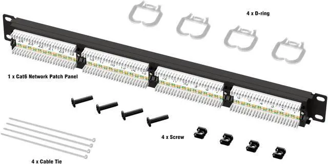 Standards-compliant: Cat6A Network patch panel complies with the CE and RoHS. Use included D-rings and cable ties for easy cable management