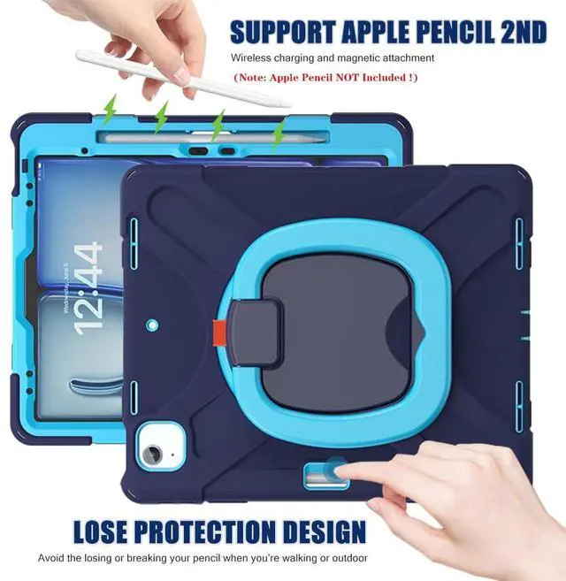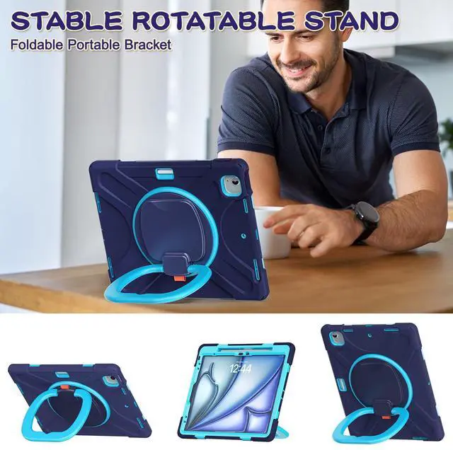 [MULTI-FUNCTIONAL HANDLE/KICKSTAND] The heavy-duty shockproof 13-inch ipad air 2025/2024 & 12.9-inch ipad pro case comes with a 360 Degree rotating folding stand, which can be stable enough on several different surfaces, ideal for watching videos, conferences