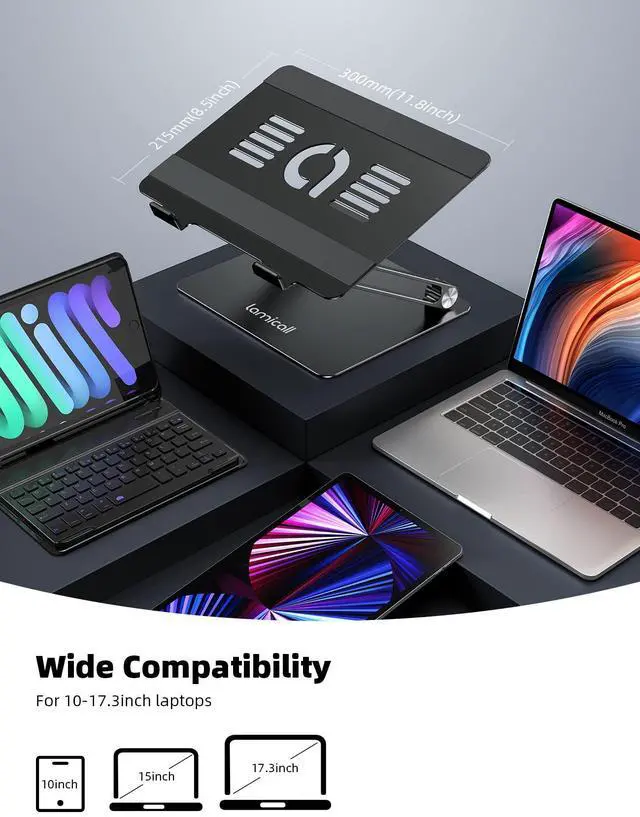 Wide Compatibility: The laptop stand for desk is compatible with all laptops from 10" up to 17.3", such as Mac MacBook Pro 16 14 inch 2021 Air 12 13 15 inch 2018 2019 2020 Microsoft Surface Google Pixelbook Dell XPS HP Acer Chromebook and more 11inch - 17.3 inch laptop notebooks. Christmas Gifts Thanksgiving Present Regalos de Navidad.