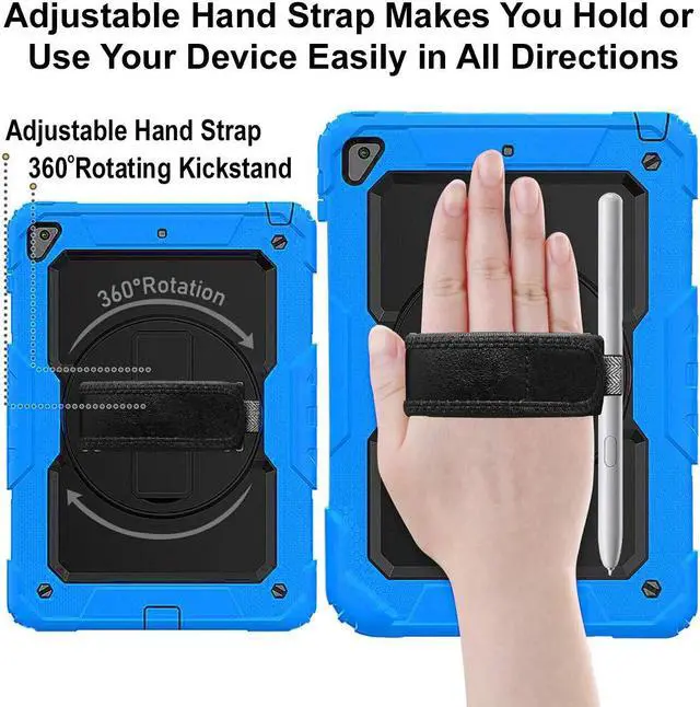 DuraSafe Cases for iPad PRO 9.7 InchiPad 6th 5th Air 2nd [ Pro 9.7 6/5 Air 2 ] Gen A1893 A1822 A1566 A1673 A1674 Full-Body Protective Shock Proof Cover with Shoulder Strap - Sky Blue