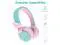 Riwbox BT05 Bluetooth Kids Headphones Wireless Foldable Headset Over Ear with Volume Limited and Mic/TF Card Compatible for iPad/iPhone/Tablet (Pink&Green)