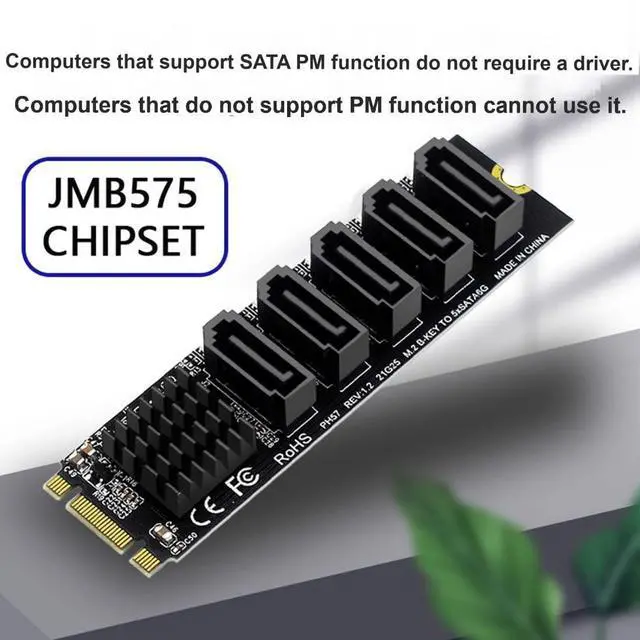 chenyang 5 Ports M. 2 to SATA Adapter, B+M Key NGFF 1 to 5 SATA 3.0 Port Expansion Card with JMB575 Chip/LED Indicator