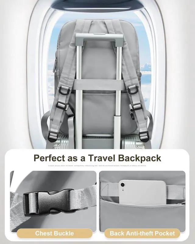 suratio Laptop Backpack for Women Large Travel Backpack for Men Gym Work Teacher Backpack with Laptop Compartment Casual Daypack Backpacks Grey