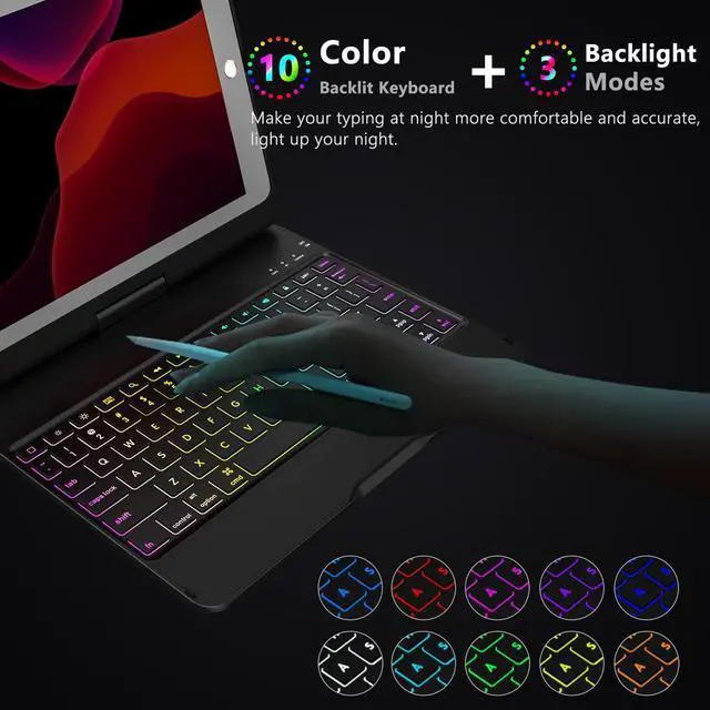 MMK iPad Keyboard Case for 6th Gen 2018, 5th Gen 2017, Pro 9.7, iPad Air 2, iPad Air 1, Backlit 10 Color 360 Screen Rotation iPad Case with Keyboard, Auto Sleep/Wake - Black
