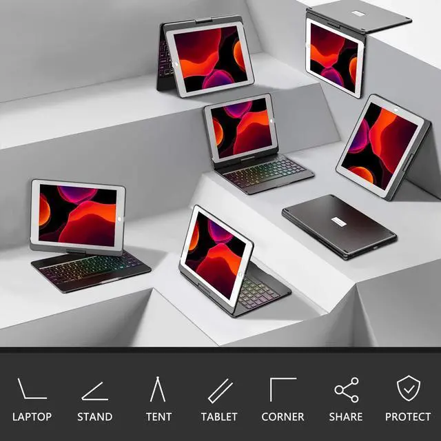 Reliable Protection & 360 Degree RotatingMMK iPad case with keyboard offers 360° of viewing angles. Effortlessly turn your iPad into a laptop so you can type up notes, take video calls, and more from anywhere in your house. A sturdy mechanical hinge holds the kickstand firmly in place, even with strong tapping. Tough polycarbonate layers protect your device from impact and corner damage and can withstand drops up to 6 feet.