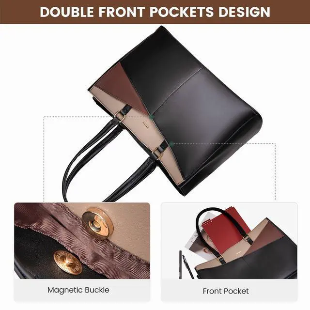 Premium Durable Material Laptop Bag:This computer tote is crafted in durable, water-resistant, scratch-resistant PU Leather and polyester lining. Top smooth metal zipper for easy opening. Metal feet base protects your bag from damage.