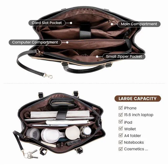 Large Capacity Laptop Bag for Women:Spacious Fashion Laptop Bag designed specifically for women, Suitable for 15.6 inch and smaller Laptop. Thickened soft protective foam pad, velcro strap secure to fully protect your laptop and tablet. The size is perfect for your laptop and all the essential that you need throughout the day.
