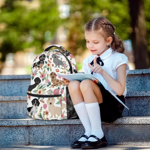 The Dog Flower school bag is applicable for child about 3 years old and above. With waterprood material, vibrant pattern and functional design, the backpack can meet all kids' daily needs. Large capacity design includes a main pocket, a front pocket and two side pockets. Two side mesh pockets are so flexable that can accommodate different size of water or milk bottle, umbrella and some small items. This trendy casual school bag can let your child stand out in the crowd. Bring him/her a convenience in daily study or other activities.
