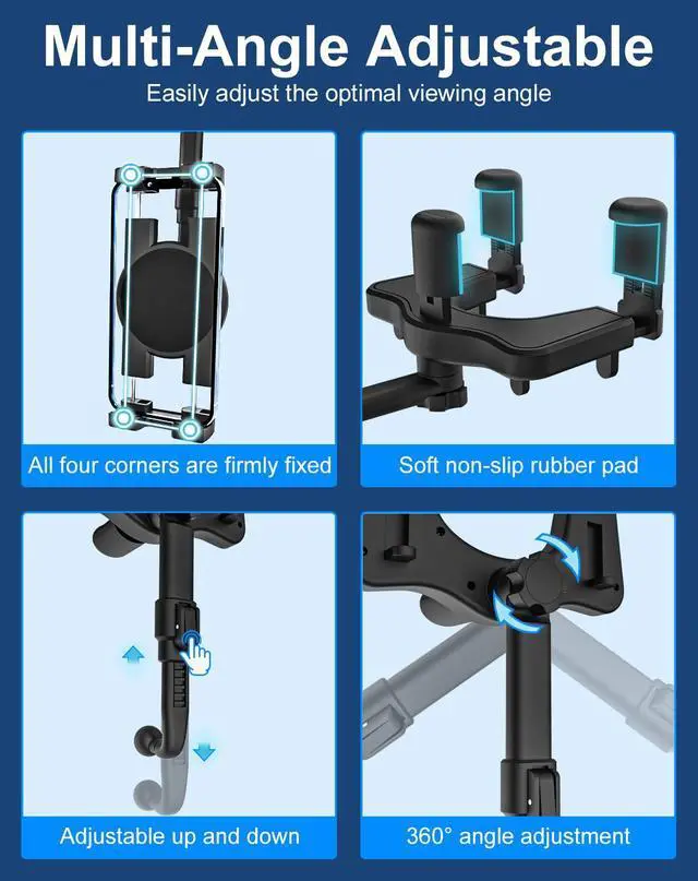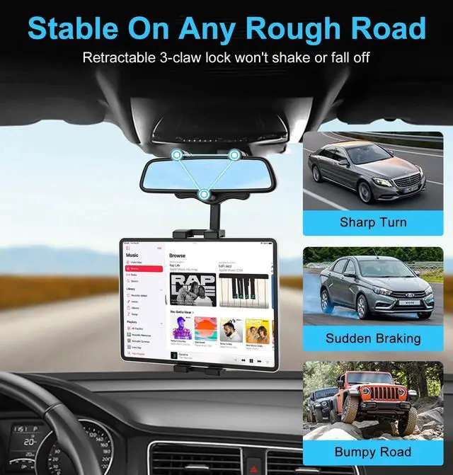 Perfect Viewing AngleThe rearview mirror car mount can rotate 360 degrees, enabling you to adjust your tablet or phone to any angle in both portrait and landscape modes. With a rotating telescoping arm, you can easily position your tablet without obstructing your view. The telescoping arm extends from 5.1 inches to 7 inches, allowing you to customize the distance between you and the tablet for