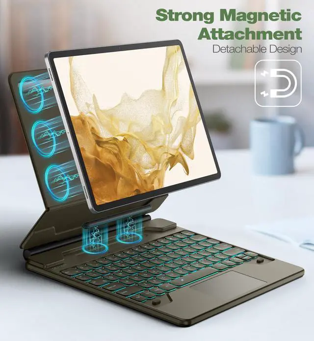EASY-SET MAGNETIC STANDThe durable aluminum alloy hinge guarantees a sturdy magnetic connection, instantly transforming your tablet into a laptop. Enjoy a floating cantilever stand with customizable angles tailored for typing, reading, and immersive viewing. Ideal for the on-the-go lifestyle, it's the perfect companion for travel, business, and work, ensuring seamless adaptability to your needs.