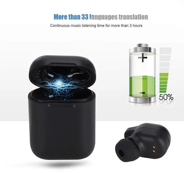 33 Language Cellphone Translator Earbuds, Smart Delayed Translation Mini Single Ear Headset with Charging Box, Support for Mobile Phone Translation