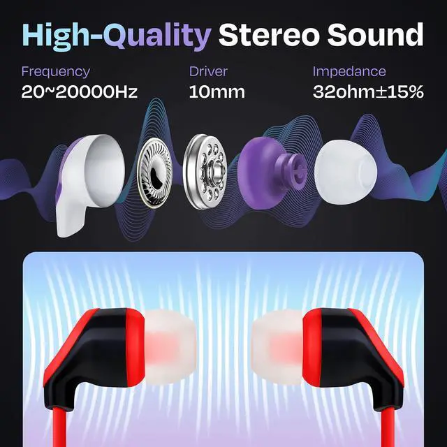 Ergonomic and widely compatible. The earbuds come with silicone earbud tips and anti-tangle flat cord. These earphones with microphone have the standard 3.5 mm audio jack compatible with most devices
