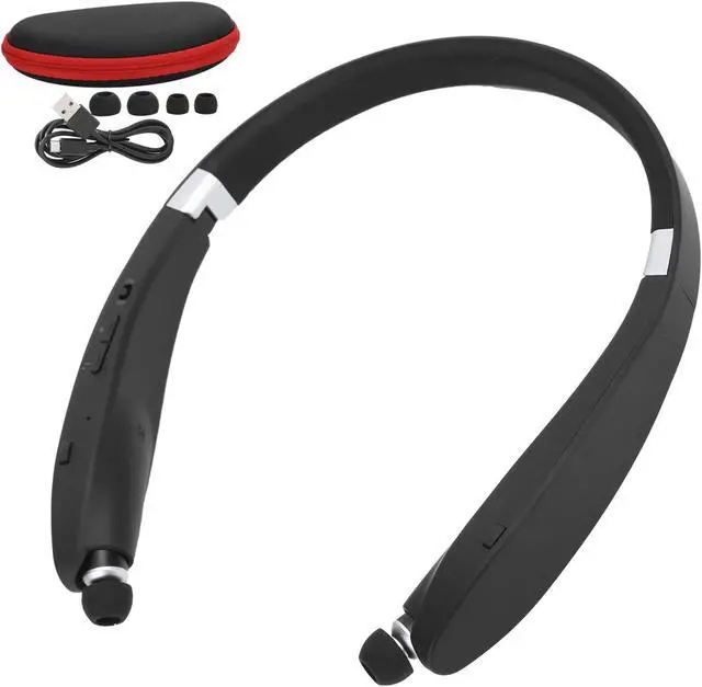 SX991 Bluetooth Headset, Bluetooth 5.0 Neckband Headphones Foldable Sports Earphone with Retractable Earbuds, for Home Office, Video Conference, with Carry Case