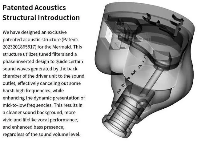 10MM dynamic driver and patented acoustic structure Mermaid is a 10mm high-strength magnetic plated beryllium diaphragm dynamic driver in-ear HIFI earphone with a balanced and neutral tonality.