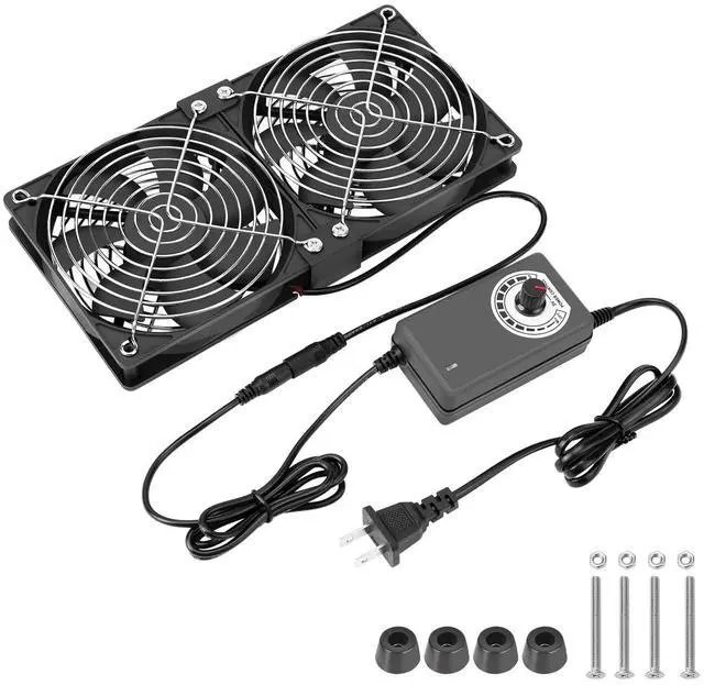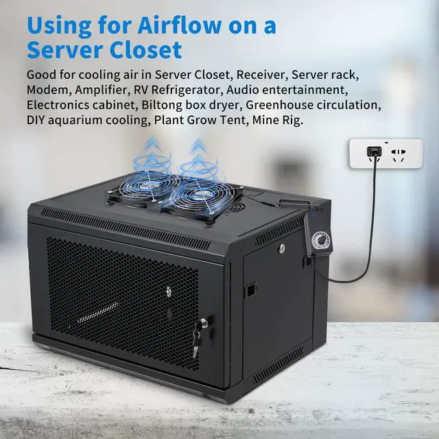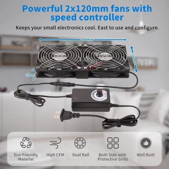 KEYFANCLUB Dual 120mm High CFM Computer Fans with AC Plug, AC 110V - 240V Variable Speed Fan, Cooling for Server Closet Cabinet Mining Machine Chassis Workstation