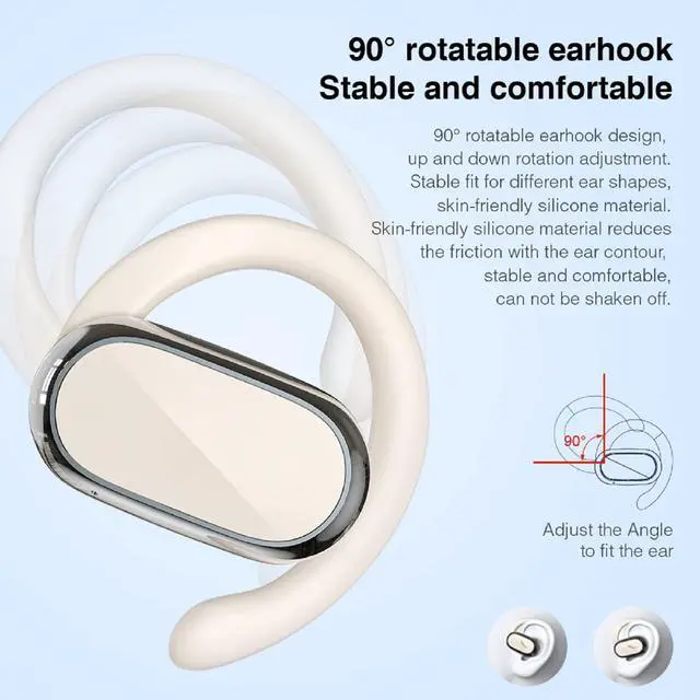 1. Open ear earbuds are made of non-slip& skin-friendly ABS, suitable for sports outdoor and daily use, will comfortable and stable to wear for a long time.