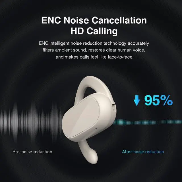 3. Open ear headphones are equipped with dual noise-canceling microphone for crystal-clear calls on both ends.
